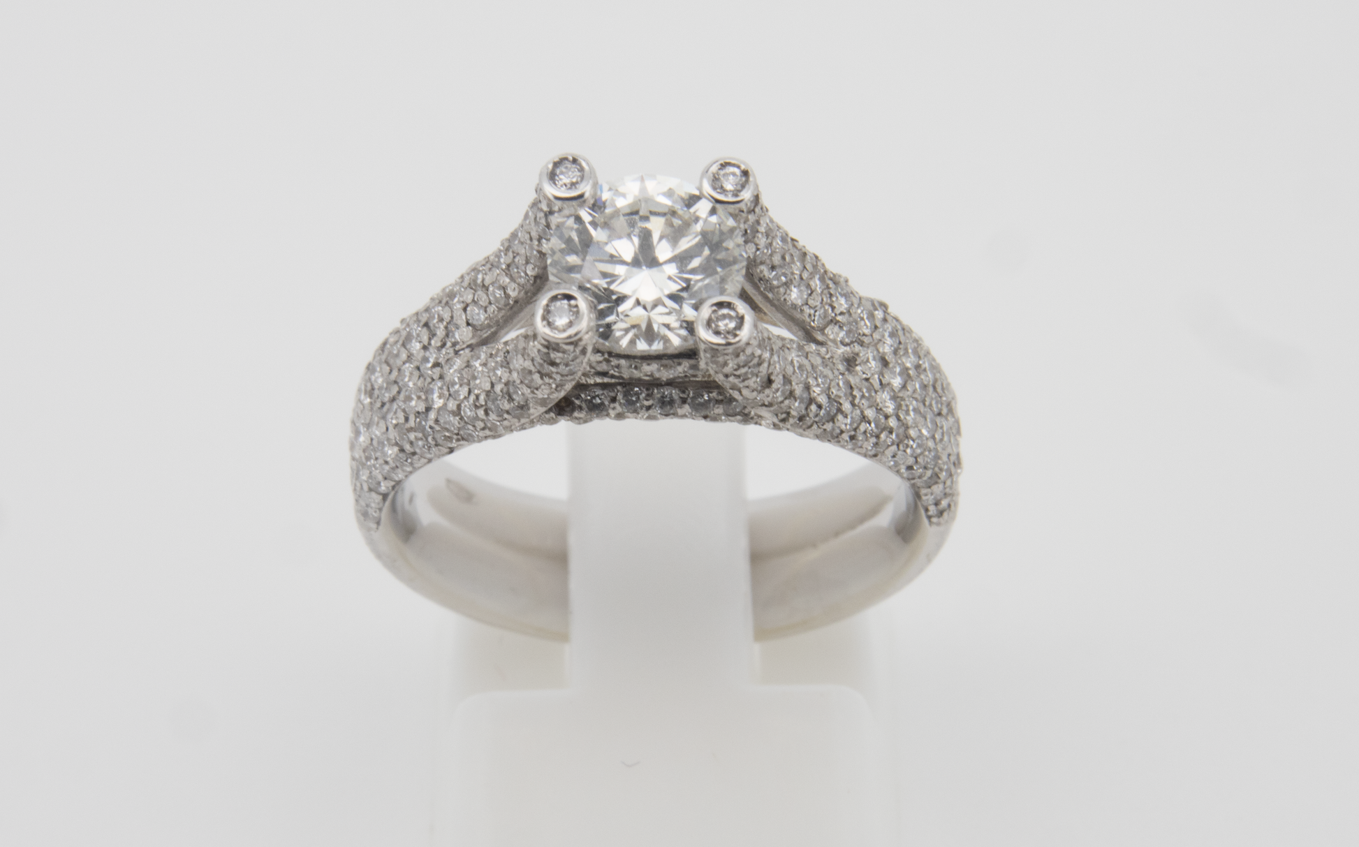 Carat (ct): Natural white pave diamonds for  1.13ct, natural diamond for 4 prongs for  0.06k