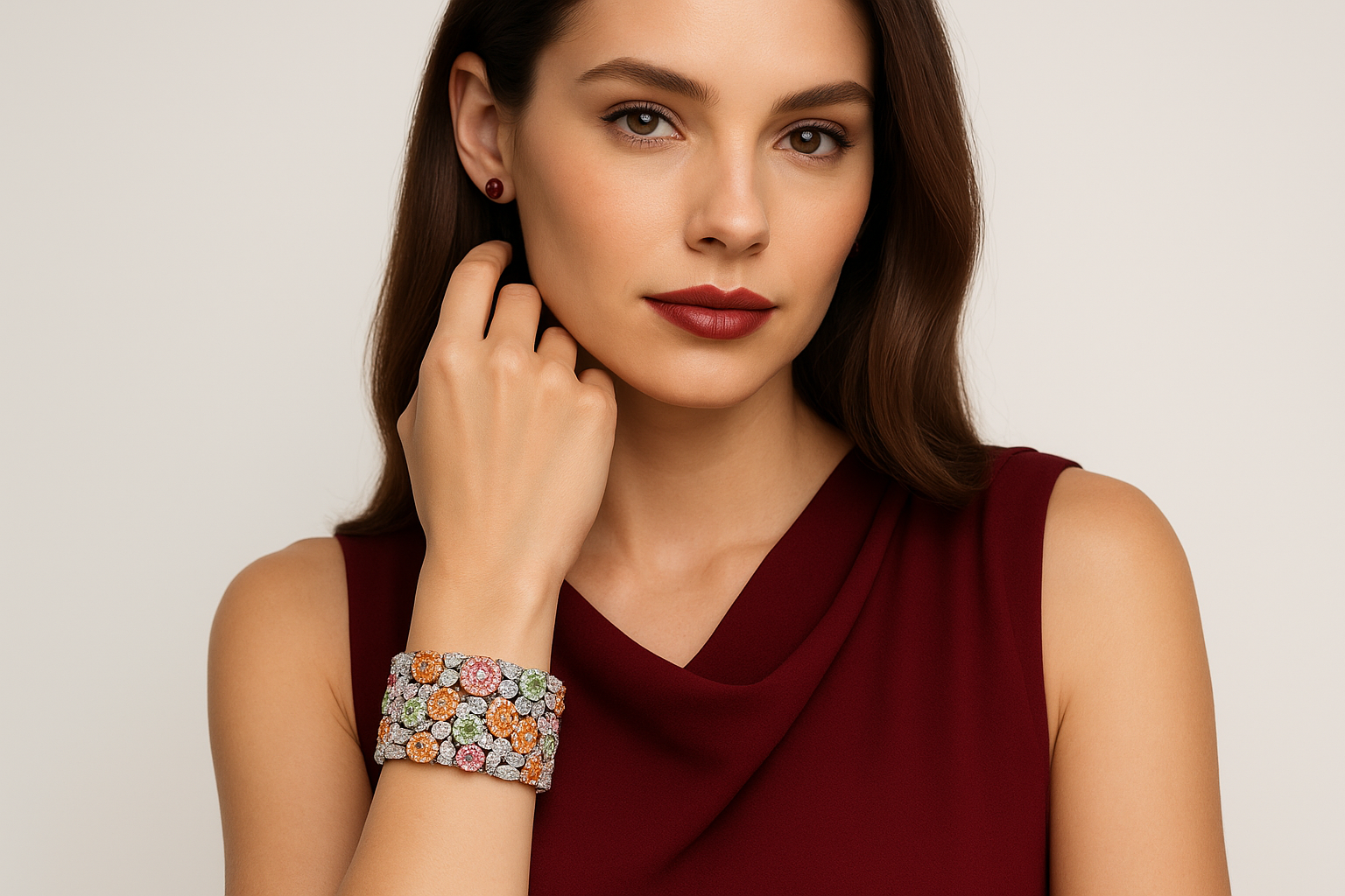 Crispina - Gold Bracelet (18K)  with Natural white , Colored Diamonds, Colored Natural sapphires, and Natural Emeralds